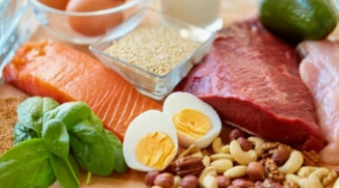 단백질이 풍부한 식품: 생선, 달걀, 닭고기, 두부, 콩, 유청 단백질 등